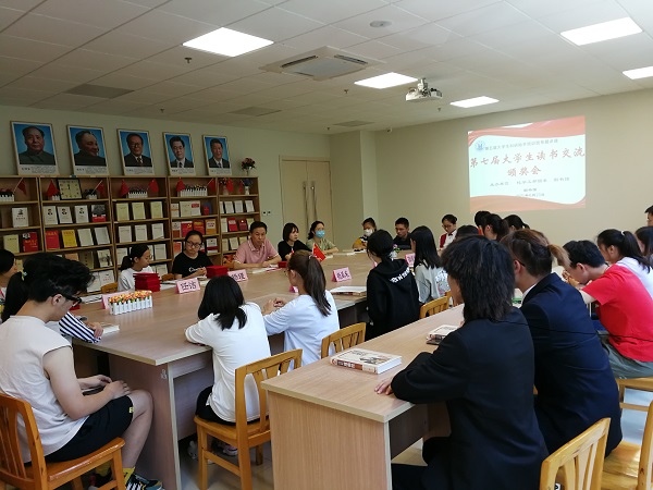 校党政办主任顾文业、学工部副部长王莉娜、团委书记任洁为获奖学生颁奖。一等奖代表经管学院史思、传媒学院徐嘉怡、杨禹来、教育学院薛婧怡等四位学术在大会上交流了自己读书心得。