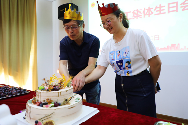 6月30日中午,我校于教工之家举办了2021年东海集体生日庆祝会。在这个热情洋溢的日子里,学校领导班子不仅为31位寿星送上了最真挚的祝福,大家还趁此机会提前庆祝了中国共产党的百年华诞。