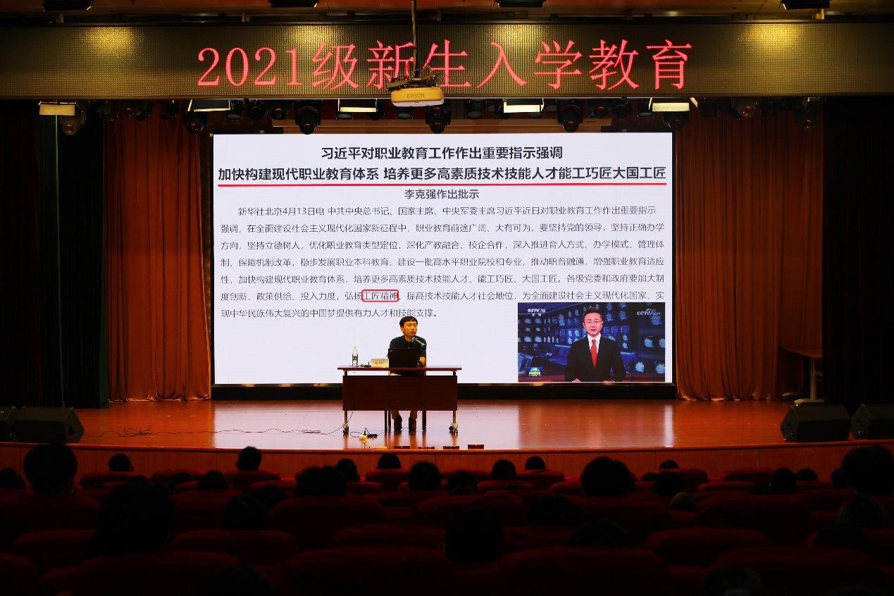 2021级新生入学教育的主题为“学当新时代工匠”,由四个系列讲座组成,分别是:党的百年与我、新时代工匠、东海学子炼成记、校园(网络)安全常识。分别由来自教务处、学工部、保卫处的六位校内讲师和来自吴泾镇塘湾派出所的朱萍警官主讲。整个入学教育充满浓烈的爱国情怀,具有鲜明的新时代特征和丰富的典型案例。