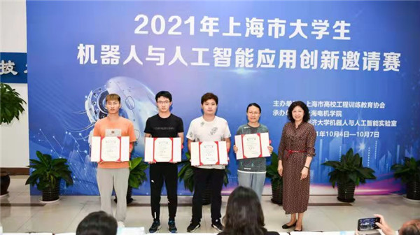10月7日,2021年“上海市大学生机器人与人工智能应用创新邀请赛”在上海电机学院落下帷幕。本次邀请赛由上海市高校工程训练教育协会主办,上海电机学院、同济大学共同承办,来自同济大学、华东理工大学、上海理工大学、上师大天华学院、东海职业技术学院等12所高校40多名学子参加比赛。通过激烈角逐,我校机电学院李万艳老师指导的孟广泽、陈璟明、郭增辉等3名学生以高职组第一名的成绩荣获大赛团体特等奖。