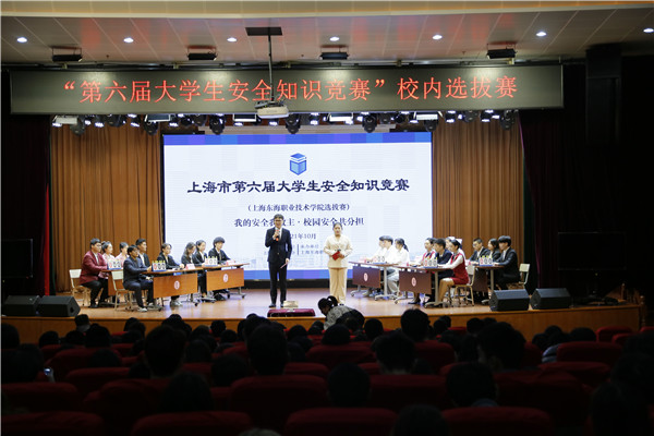 10月21日,“上海市第六届大学生安全知识竞赛”校内选拔赛在学校东海源报告厅举办。校长助理黄樑、宣传部副部长杨静、学工部副部长王莉娜、保卫处长蒋久泉出席本次比赛,还邀请了属地塘湾派出所杨海峰警官参加此次活动。
