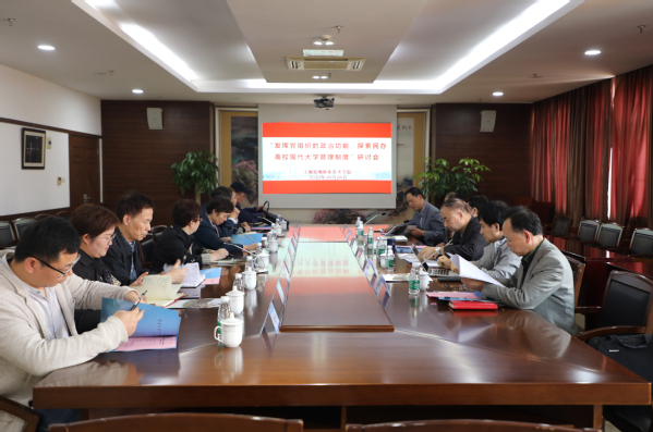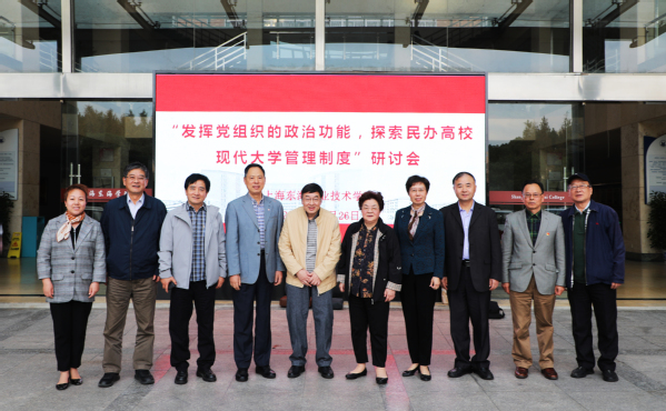 10月26日,“强化党组织的政治功能,探索民办高校现代大学管理体制” 党建研讨会在东海学院举行。上海民办高校党建重点任务第三督查调研组组长朱南勤、上海建桥学院党委书记江彦桥、上海中侨职业技术大学党委书记平杰、上海震旦职业学院党委书记黄晞建、上海济光职业技术学院党委书记姜富明、上海工商职业技术学院党委书记金伟国应邀出席会议,东海学院原党委书记赵佩琪、校党委副书记王玉、党政办主任顾文业、关工委“五老”成员喻家琪等相关人员参加会议。我校校长、党委副书记王刚致欢迎辞。党委书记曹蓉蓉主持会议并作主题汇报。