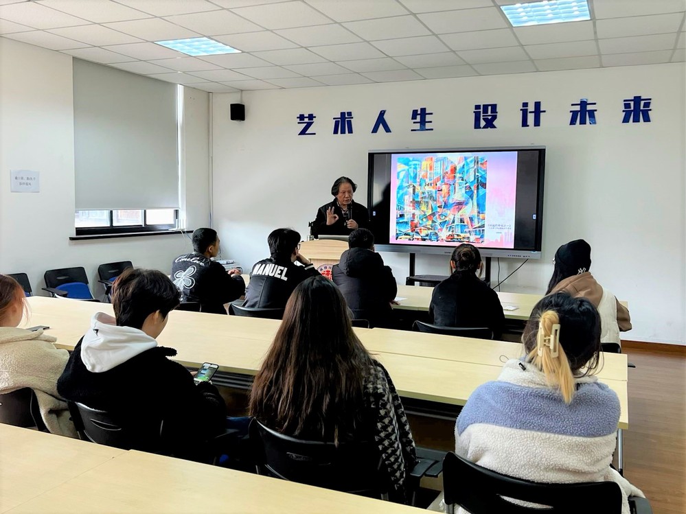 讲座上,顾老师结合自己的学习、生活、工作经历,以画作欣赏的方式,向学生展示了上海的变迁、分享了自己的创作理念,并鼓励学生道:艺术创作一定要多听多看多感受,不要浮躁,静下心来,一定会找到最美的风景,做一件事做到底,相信自己一定会成功。