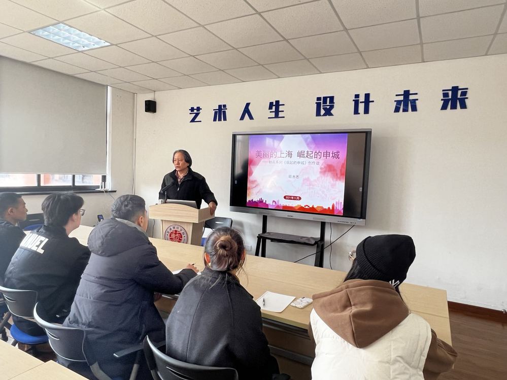 11月22日中午12点,艺术设计学院院长顾惠忠教授在1-314为学院大一大二的入党积极分子开展主题为“美丽的上海,崛起的申城”的讲座。