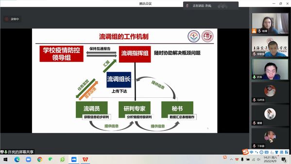 为有效阻断疫情校内传播链,进一步完善学校疫情防控应急指挥体系,及时有效应对突发问题。4月4日上午党委发出组建抗疫“侦察兵”流调志愿者团队号召,得到了各党支部的积极响应,40多名党员报名参加。流调志愿者团队由党委书记曹蓉蓉亲自领衔,并于当晚进行了第一次全体志愿者线上会议,部署了学习培训、分组模拟等一系列工作。
