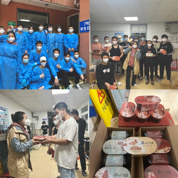 当下,学生们“足不出户”,活动范围缩小至寝室及卫生间。为共同抗疫,学生宿舍楼驻楼辅导员、宿管员、楼内学生志愿者共同组成宿舍楼服务保障小组。由辅导员负责召集学生组成志愿者服务队伍,每天将一日三餐送至每一个寝室,确保每一位学生都可以吃到饭。