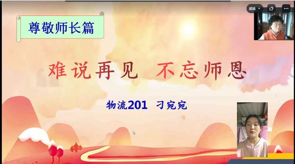 人的一生,除了父母的陪伴,还有老师的教育。在尊敬师长篇,由学院制作的短视频《致最敬爱的老师》唤起了学生们的记忆。这个视频熟悉的画面记录了过去的一年中我们师生共同经历过的事情,记录了老师们艰辛的付出和同学们努力的成果,记录了同学们获奖的喜悦和对老师的感恩之情。一位学生连麦演讲了《难说再见,不忘师恩》,她以自己的成长经历和所见所闻声情并茂地倾诉了对老师发自内心的感恩,表达了将带着这份感激之情走上工作岗位,以脚踏实地的工作来回报培养自己的母校和老师们。