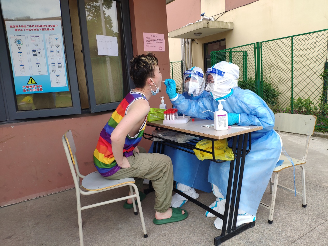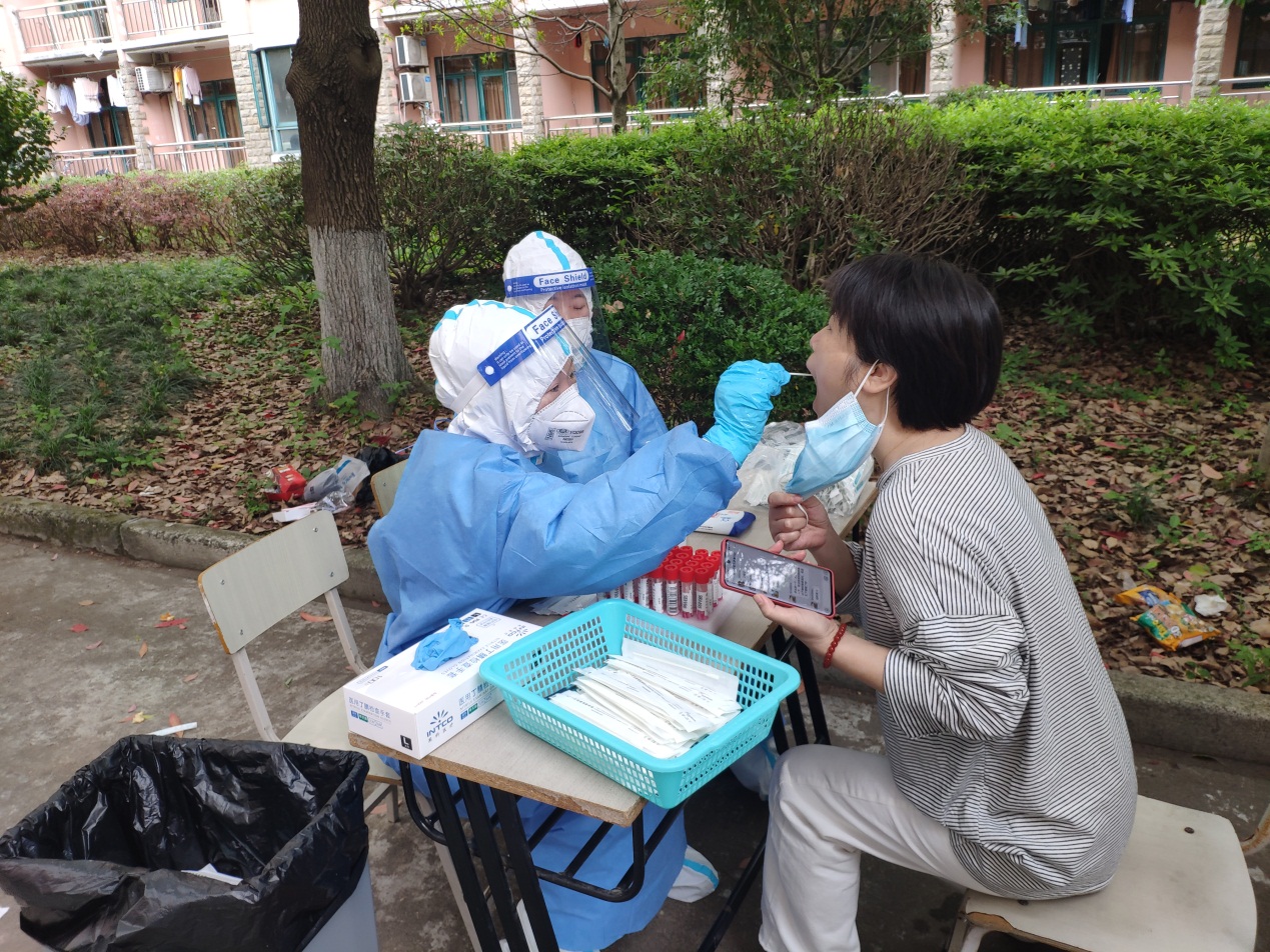 “今天,是我培训后第一次正式上岗,心里还是免不了有些紧张和忐忑”。艺术设计学院党支部书记万黎黎在护理学院张丽的指导下,两个人完成了女生4号楼443人的采样。“采样工作看似简单易懂,但在实际操作时有很多需要注意的地方。采样的区域对不对,手势力度够不够,这些都是第一次上手的我心中关注的点。”万黎黎说。