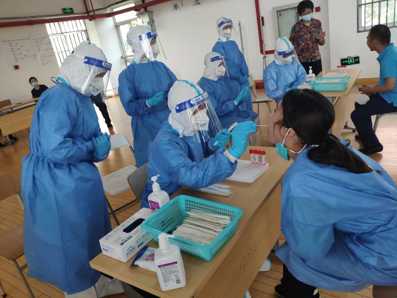 “最好的教学是实践,感谢各位专业老师们严格培训,让我们感受到做核酸的第一视角,体会到了在防护服里被汗水的‘包裹’。相信我们一定能打赢这场疫情阻击战。”机电学院辅导员孙菁如是说。