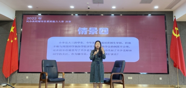 本次大赛从9月14日起,全市民办高校共推选出33位辅导员参加。经过理论测试(笔试)、案例分析、谈心谈话、理论宣讲等环节的比拼,周小娟老师脱颖而出,临场表现得到了现场评委的一致肯定。这也是继2020年首届民办高校辅导员素质能力大赛我校辅导员获得一等奖后,蝉联该奖项。