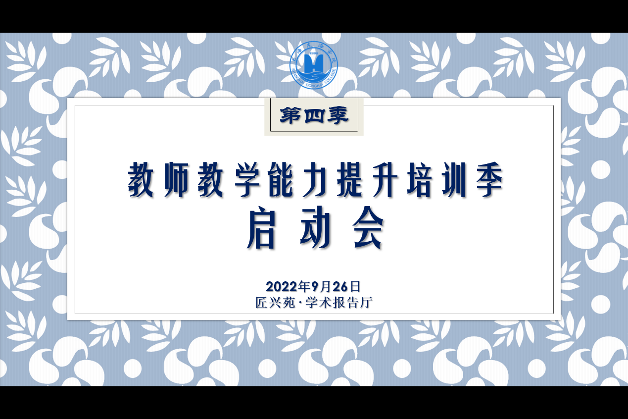 9月26日下午,上海东海职业技术学院第四季教师教学能力提升培训启动会在匠兴苑学术报告厅召开。校学术委员会教学工作专委会委员,教学部门教学副院长、副主任,专业主任,骨干教师近50人参会。