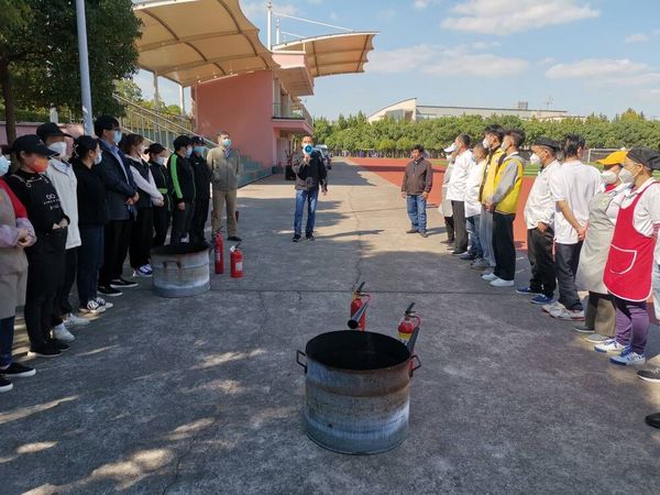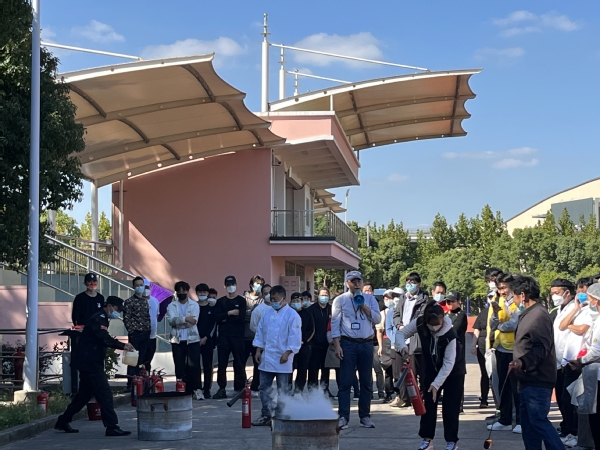为落实上海市教委《关于加强近期本市校园火灾防控的工作方案》的通知要求,按照学校年度消防安全工作计划,为了提高我校食堂、超市等外包服务员工的消防安全意识,防范火灾事故发生。10月19日下午,在学校运动场,学校保卫处组织了相关人员进行消防安全知识培训、灭火操作演练。