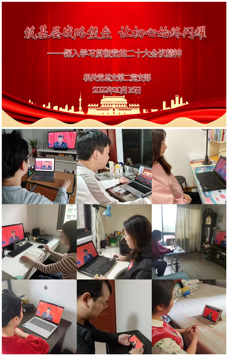2022年10月16日上午,中国共产党第二十次全国代表大会在北京人民大会堂隆重开幕。机关总支第二党支部组织全体党员收听收看了党的二十大开幕会直播,聆听习近平总书记代表第十九届中央委员会所作的报告。
