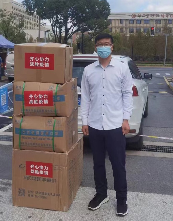 “捐赠物资将用于现阶段学校疫情防控,进一步增加学校防疫物资的储备。”后保处副处长黄海说。他代表学校接受了陈凯先生捐赠的防疫物资,并向爱心家长及学生送去诚挚的谢意。