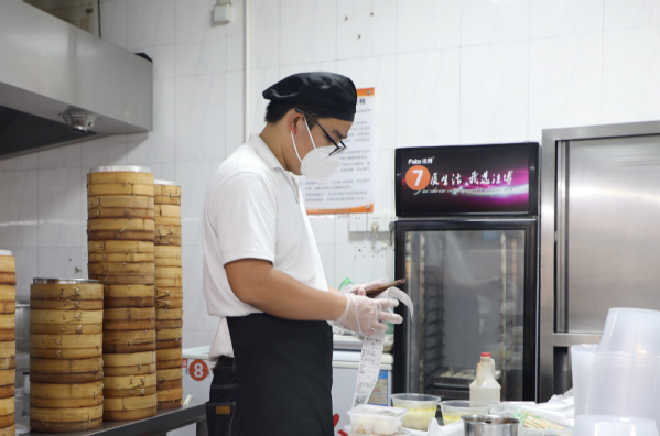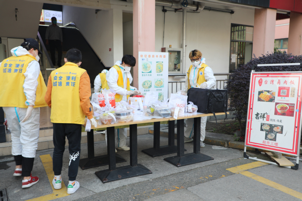 食堂和“俺来也”团队加班加点工作,为学生提供送餐服务。