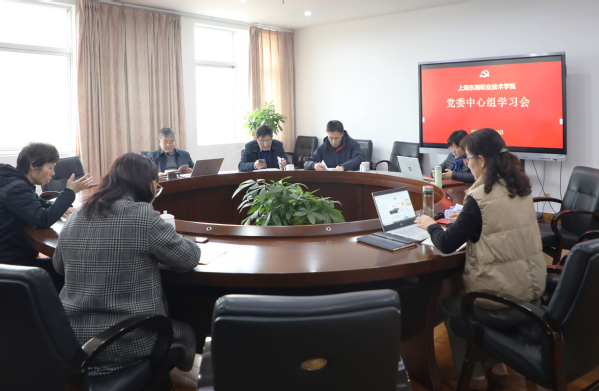 11月30日下午,我校在东海源806会议室举行党委中心组学习会,专题学习党的二十大报告,学习会由校党委书记曹蓉蓉主持。