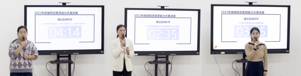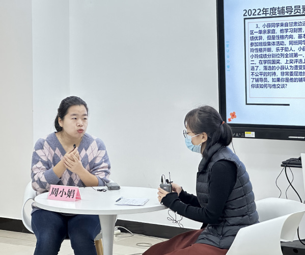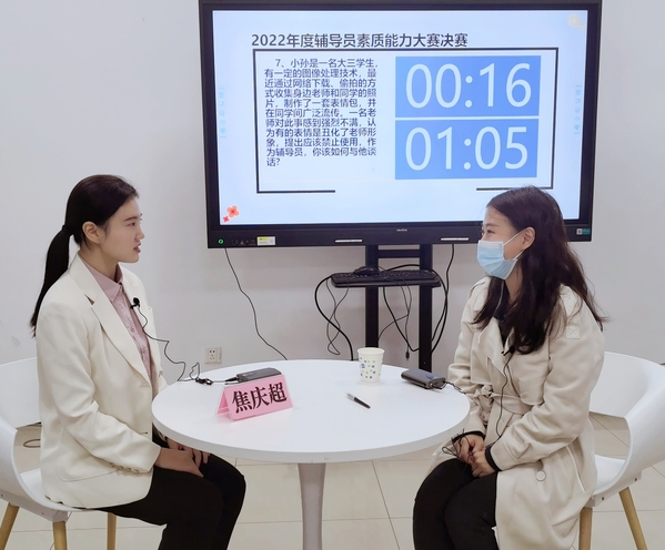 决赛分为谈心谈话和理论宣讲两个环节。谈心谈话内容源于工作实践,涉及资助育人、党员发展、疫情防控、网络舆情等问题,考验辅导员把握主要矛盾,实施科学引导,用合情合理合规的方法解决学生问题的能力。理论宣讲主题贴合新时代大学生成长规律,用“小切口”讲“大道理”,用大学生更能听懂、更易吸收的方式展开,助力党的二十大精神在学生中入心入脑。