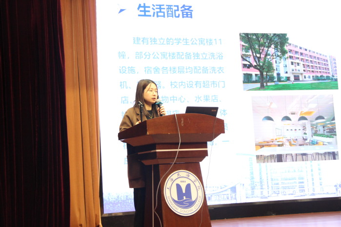 招生办公室刘静为同学们作高考志愿填报指导及上海市专科层次依法自主招生工作介绍,并讲解了高考志愿填报的相关思路,提出高校依法自主招生对同学们来说也是一次重要的机会。刘静还介绍了东海学院自主招生的招生政策、招生类型及招生计划情况,希望同学们能提早做好准备,明确目标,实现自己的大学梦。