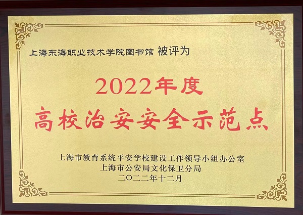 日前,我校图书馆荣获上海市“2022年度高校治安安全示范点”荣誉称号。