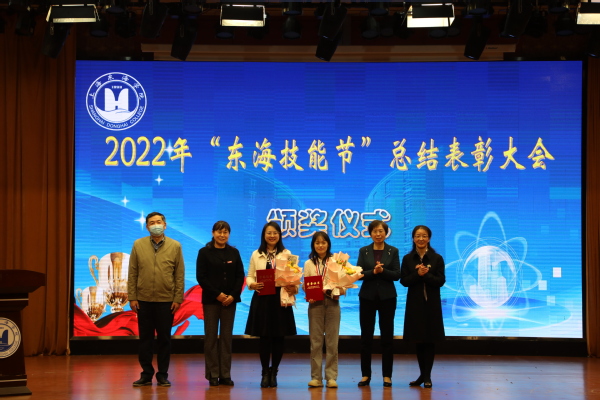 随后,副校长郁萍宣读学校表彰决定。2022年我校共设置技能大赛相关荣誉称号四种,获得荣誉称号师生共计143人(教师15人、学生128人),其中“东海金牌指导”2人、“东海优秀指导”13人、“东海技能之星”46人、“专业技术能手”82人。校领导曹蓉蓉、郁萍、卓丽环、黄樑分别为各位获得荣誉称号的师生代表颁发荣誉证书以及奖杯、奖牌。“东海金牌指导”教师阿依仙古丽和“东海技能之星”学生钱泽平分别发表获奖感言,传媒学院学生李思颖作为备赛选手,分享了备赛心得体会。