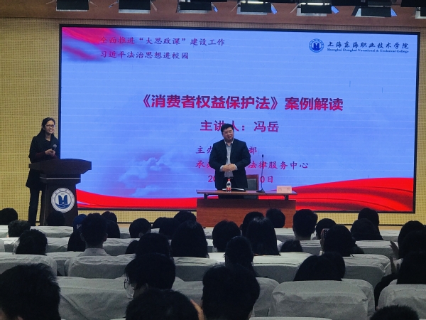 社科部邀请了上海柏芮思律师事务所管理合伙人、主任律师、上海知名律师冯岳,他是上海律师协会调解委员会委员,从事法律行业近20年,经办的案件上千起,有丰富的理论和实战经验。他针对学生们的消费行为和校园出现的恶性消费案件等开展了《消费者权益保护法》案例解读的讲座。冯律师表达幽默风趣,紧扣学生们关心的现实问题,如网购的退货问题、直播带货的真假问题、校园贷的危害、网络游戏信息和资产的管理、转让和出售问题等以案说法,具体详尽、细致入微,对法律解读清晰到位。讲座结束后,同学们都意犹未尽,有同学说:“生怕错过了对案件的解读,就连打瞌睡都忘记了!”
