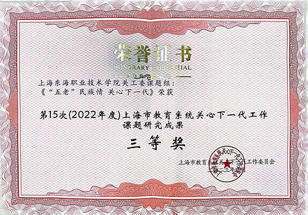 3月21日,上海市教育系统关工委召开2022年度上海市教育系统关心下一代表彰会,我校关工委课题组“五老民族情 关心下一代”荣获第15次(2022年度)上海市教育系统关心下一代工作课题研究成果三等奖。
