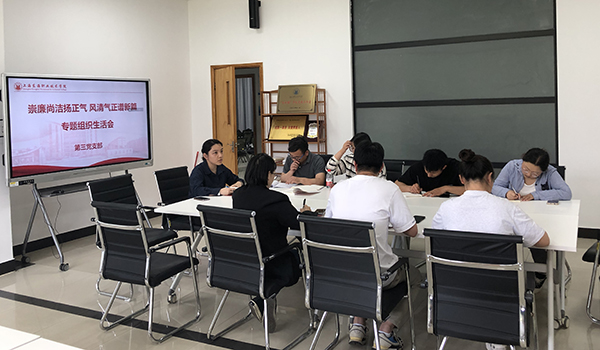 为深入学习贯彻习近平新时代中国特色社会主义思想,进一步引导党员树立廉洁观念,做正直、廉洁、守法、公正的合格党员,5月16日下午,第三党支部在大学生发展中心会议室召开了主题为“崇廉尚洁扬正气 风清气正谱新篇”专题组织生活会。会议由党支部书记杨瑾主持,支部全体党员参加。