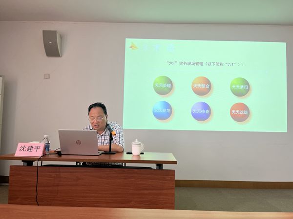 沈建平老师首先从“六T”的具体内容讲起,“六T”的内容主要包括天天处理、天天整合、天天清扫、天天规范、天天检查、天天改进;随后着重分析了“食品安全方面的法律与法规”“制度与规范”“食堂‘六T’现场管理”“操作规范与关键节点”“值得关注的五个问题”等五个方面;最后重点列举了在实际工作中容易忽视的一些小细节、小问题。