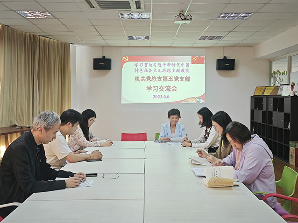 6月6日中午,机关第五党支部在工会教师之家会议室召开了第二次学习贯彻习近平新时代中国特色社会主义思想主题教育学习交流会,支部全体党员和入党积极分子参加了会议,党支部书记尤逸萍主持会议。