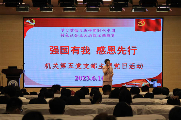 6月16日下午,机关第五党支部在匠兴苑报告厅举行“强国有我 感恩先行”主题党日活动,支部全体党员和继教院全体学生参加了主题活动。