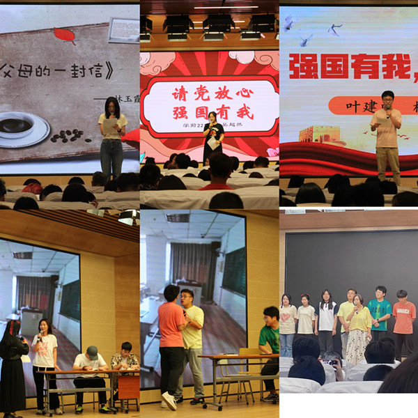 学前221班吴超然、机电201班叶建成两位学生上台演讲“强国有我,感恩先行”,他们声情并茂,从不同的角度讲述了自己的体会,发出了共同的声音:时代变迁,国家富强,时代的接力棒传到了我们手中,强国的重任交给了我们。党的二十大描绘的蓝图靠我们去实现。虽然我们是成教生,但是只要我们努力,一样能成为祖国的栋梁。所以我们要从一点一滴小事做起,珍惜学校的学习时间,努力培养自己的学习能力和综合素质。争取做一个对社会有用的合格的接班人。