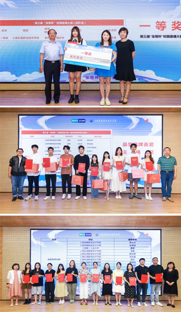 第三届“宝尊杯”校园直播大赛自3月开始筹备,4月20日在我校开幕,至6月闭幕,历时4个月,吸引了来自华东的320余位同学报名,通过短视频海选、企业培训、直播决赛三个环节最终决出团队一二三等奖7组,最受品牌喜爱主播奖10位,优秀指导教师13位,优秀组织院校8个及入围奖31组。