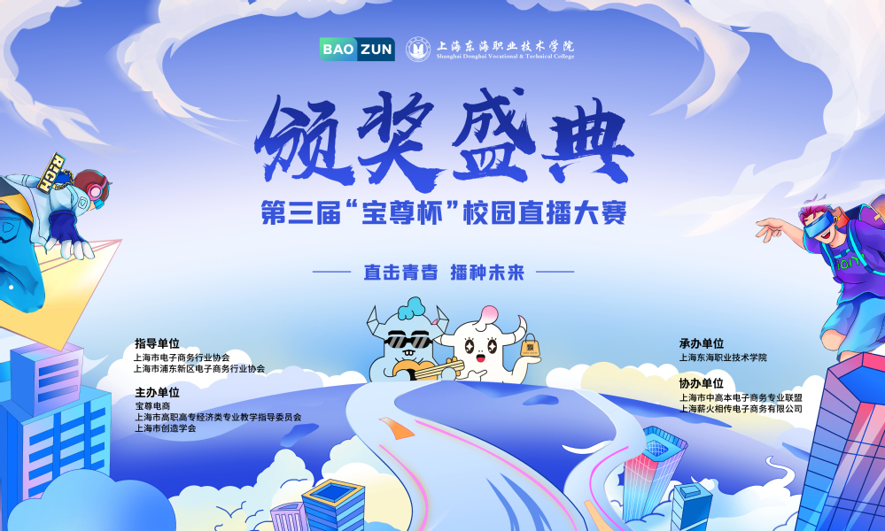 6月21日下午,第三届“宝尊杯”校园直播大赛颁奖典礼在我校匠兴苑报告厅举行。作为本届赛事承办方,我校副校长卓丽环代表出席并致辞。上海市电子商务行业协会秘书长杨庆、上海市浦东新区电子商务行业协会秘书长黄岳、宝尊集团人力资源副总裁徐晶艺、上海市高职高专经济类专业教学指导委员会主任姚大伟、上海市创造学会创新委员会主任王云飞等出席典礼并为获奖团队颁奖。