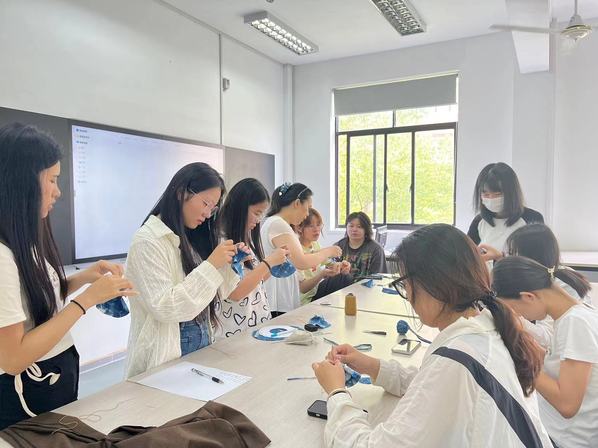 润心社区分别在6月7日和6月14日两天在德艺馆402C艺术设计学院服装与服饰设计专业实训室开展了“走近扎染技艺”活动和“端午香包DIY”活动,共计30多人共同参与,艺术设计学院教师李莎和阿依仙古丽做,带领同学们一起走近传统文化的技艺。同学们在参与活动的过程中,增长了文化底蕴,提高了动手能力,现场气氛热烈。