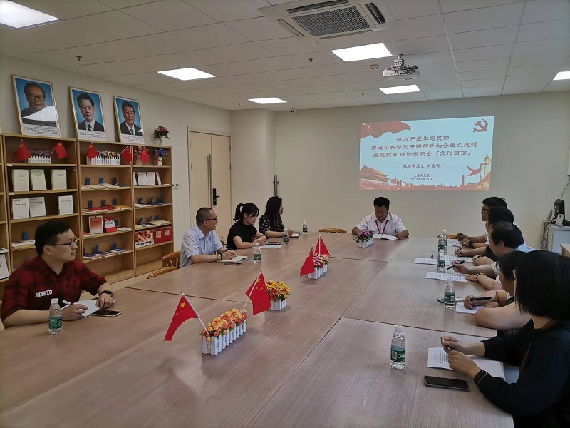 为贯彻落实习近平总书记在文化传承发展座谈会上发表的重要讲话,将讲话精神作为深入开展学习贯彻习近平新时代中国特色社会主义思想主题教育理论学习的重要内容,推进主题教育走深走实,纳入支部“三会一课”学习安排。机关六支部于6月30日,在图书馆党建阅览室召开理论学习会(坚定文化自信主题)和组织生活会。机关六支部全体党员参加,会议由支部书记潘健文主持。