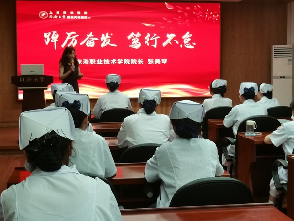 张美琴院长介绍了东海护理学院的总体概况并对学生提出相应要求和期许,充分肯定天佑临床护理班成立以来学生取得的进步。她表示,当今形势下,护理专业发展前景一片大好,天佑医院实力强大,护理背景雄厚,学院和医院可以利用各自优势,发挥各自特长,共同培养优质护理人才,实现共赢。