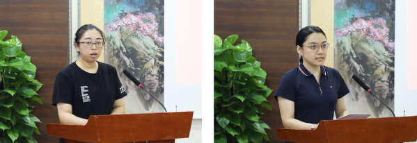 会上,艺术设计学院党支部书记万黎黎、机关第三支部书记杨瑾分别就本部门主题教育开展情况作交流发言。