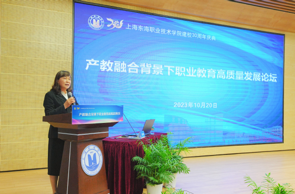 10月20日下午,庆祝建校30周年系列活动之一的“产教融合背景下职业教育高质量发展论坛”在匠兴苑学术报告厅举行。校领导、全体专职老师近170余人参加了论坛。论坛由副校长卓丽环主持。