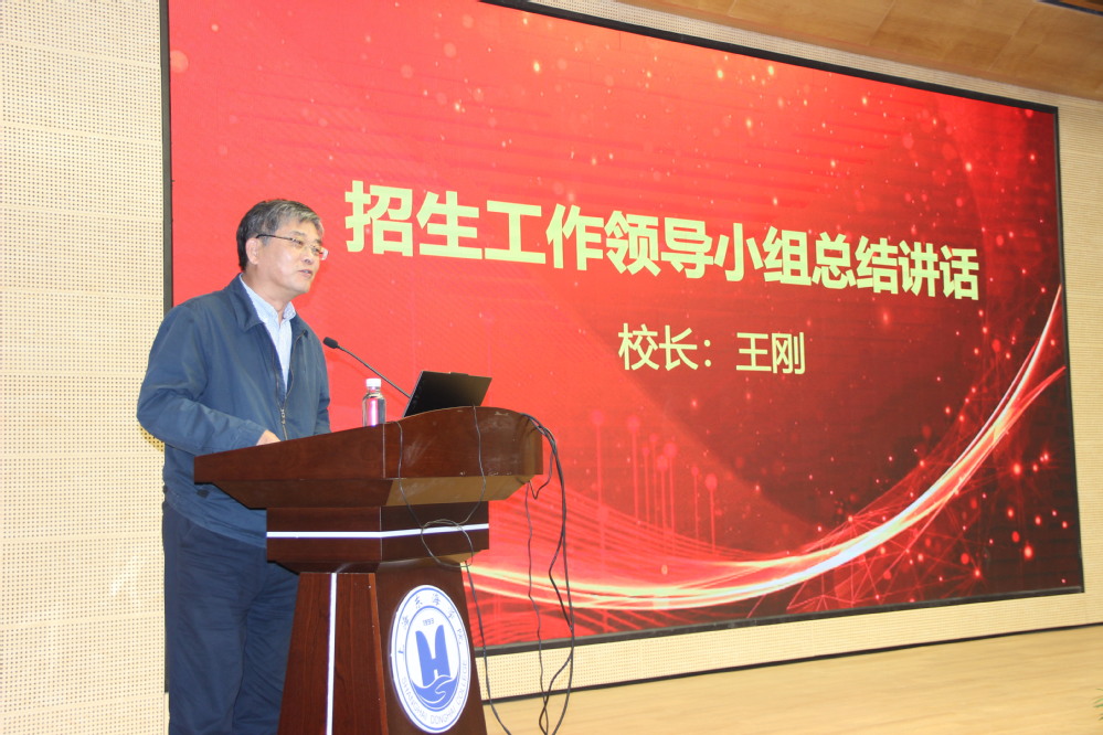 校长王刚作大会总结发言,代表学校党政领导班子对2023年招生工作付出的努力和取得的成绩给予充分肯定,对获奖的先进集体和优秀个人表示真诚祝贺,对积极参与学校招生工作的全校师生员工表示衷心感谢。王校长认为本年度招生工作的突出成绩来之不易,是和建校30周年庆典同等的大喜事,值得全校共同庆贺。