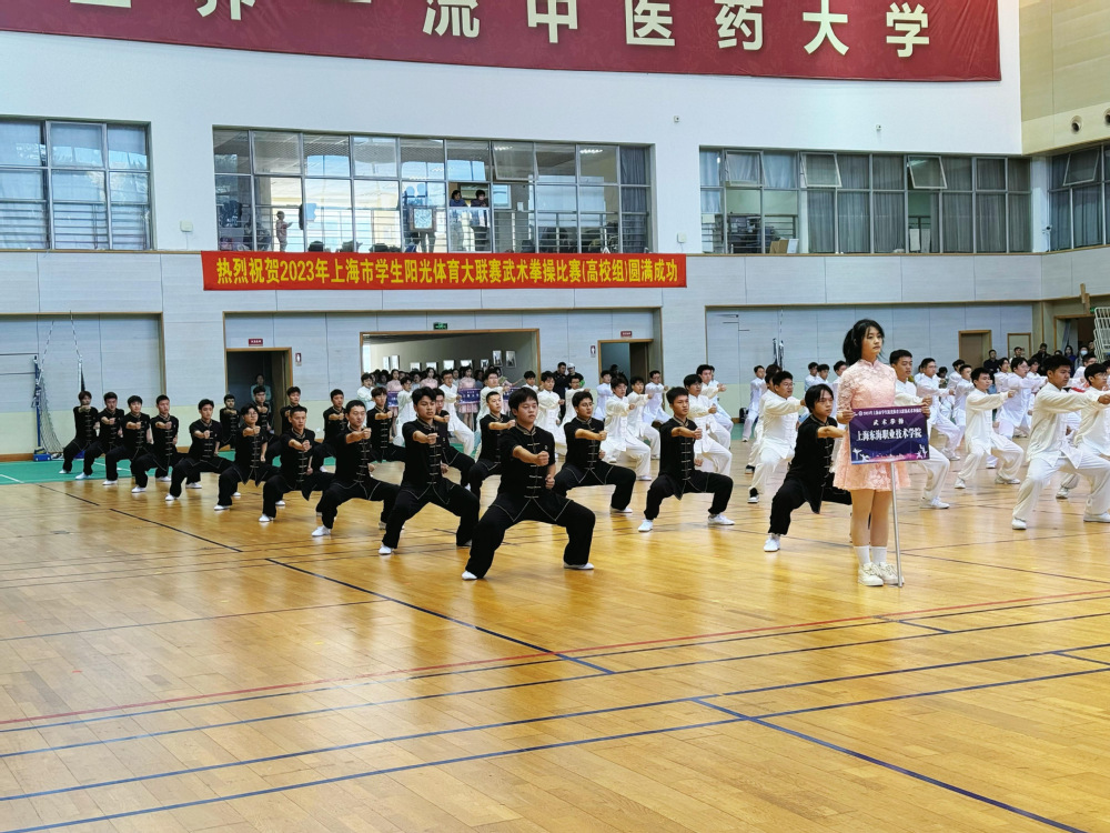 11月26日上午,由上海市教育委员会、上海市体育局、共青团上海市委员会主办,由上海市学生活动管理中心、上海中医药大学承办的2023年上海市学生阳光体育大联赛武术拳操比赛(高校组)在上海中医药大学体育馆拉开帷幕。全市共有13所高校的400余名学子参加此次比赛,我校派出男子“武术拳操”、女子“功夫扇”两支队伍共44位运动健儿参赛,两支队伍选手在比赛中表现优异均获奖,其中男子“武术拳操”荣获一等奖,女子“功夫扇”荣获二等奖,充分展示了东海健儿的风采,指导老师为基础部体育教研室秦丹。