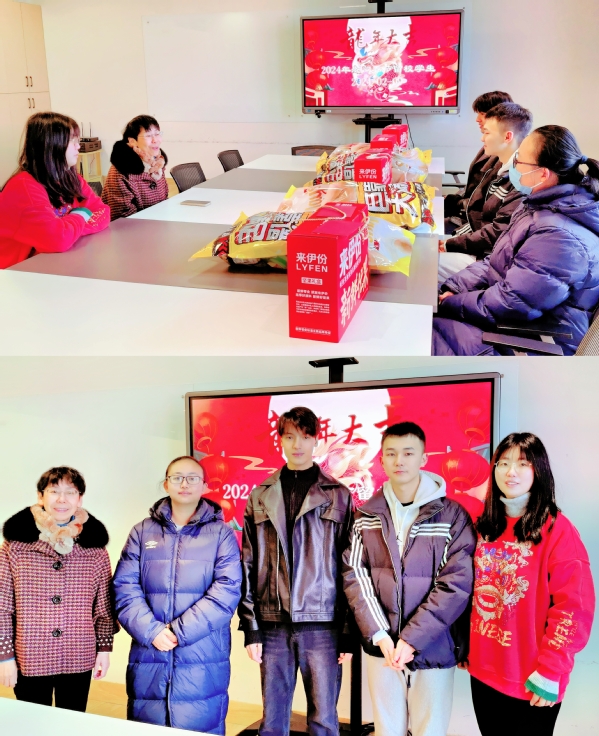 校领导与学生亲切交谈,贺副校长询问大家假期实习、春节安排等情况,给留校学生发放了新春大礼包,向同学们及家人致以新春的问候和祝福。同时,叮嘱春节留校学生,春节期间多与家人和亲友联系,随时报告自己在校情况,注意假期安全,健康饮食作息,度过一个平安、欢乐、充实假期。春节留校学生表示非常感恩学校的关怀和为他们准备的惊喜,请老师们放心,他们会合理安排时间,注意假期安全,让家人和老师放心。
