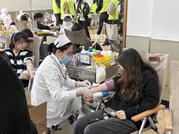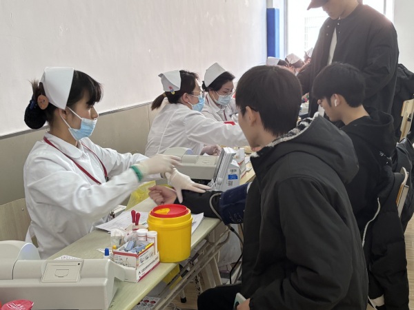 活动现场,献血学生在老师与志愿者细心引导下排队、登记、体检、献血、观察,一切都开展得井然有序。