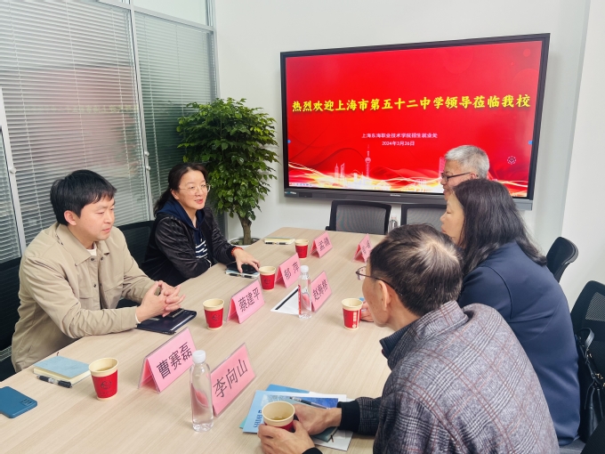3月26日下午,上海市第五十二中学副校长赵海榕、学发处主任李向山和多元升学组负责人郑一峰一行来我校调研,副校长郁萍和招生办公室全体人员参加调研活动。双方就学生多元升学有关事宜进行了细致深入的交流探讨,在学生职业体验、社团指导等方面达成共识,力求通过此次调研,互取经验、共通共融,开启高等教育和基础教育有效衔接新篇章。