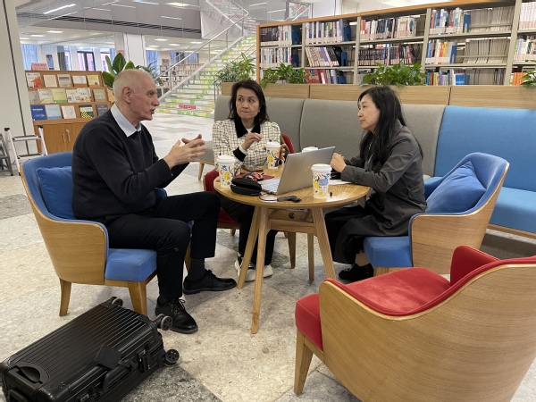 2024年3月27日,德国德累斯顿应用技术大学(Fachhochschule Dresden 简称FHD)校董、德累斯顿应用技术大学研究院董事长Volker Leipnitz教授和德累斯顿应用技术大学国际事务负责人、校长代表傅文轶教授再次来校访问,受到常务副校长贺瑛接见。副校长卓丽环会见了德方来宾,并就深化双方校际合作交流进行座谈,校国际交流办公室主任孟昭上、护理学院院长张美琴、传媒学院院长左田田、艺术设计学院院长顾惠忠、信息工程学院党支部书记张春燕等先后参加座谈。