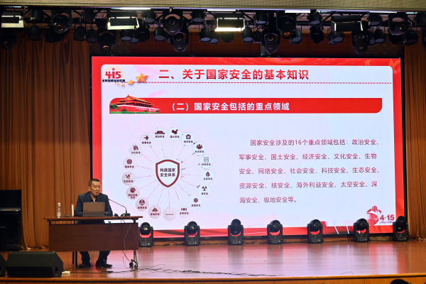 在讲座中,张政军从全民国家安全教育日的由来入手,全面阐述了国家安全的基本知识以及总体国家安全观的核心要义。他紧密结合党的二十大报告中关于国家安全的论述,以及危害国家安全典型警示案例,深入浅出地讲解了国家安全与个人幸福、社会进步和民族复兴的紧密关系。他还特别强调了网络安全、经济安全、生态安全等国家安全的重要方面,使同学们对国家安全有了更全面、更深刻的认识。