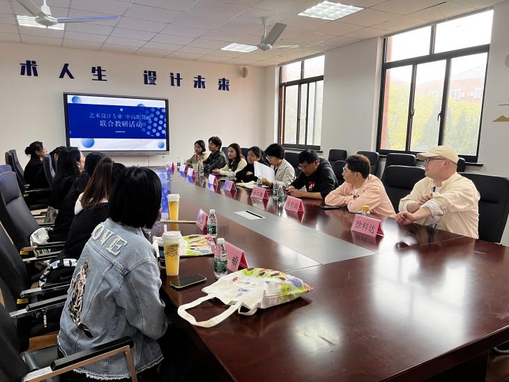 参观活动结束后,两所贯通校的领导、老师们与艺术设计专业全体教师进行了联合教研活动,会上就第一届毕业的贯通校学生及即将毕业的贯通校学生的情况做了细致的汇报,并就人才培养方案的修订进行了深入的探讨。艺术设计学院艺术设计(多媒体广告设计)专业主任张芸芸、专业教师孙俐、何颖、韩朝阳等一起参与活动。
