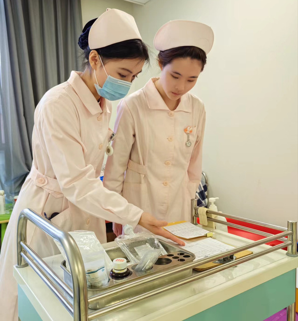 “护理技能赛项”团队由21级护理学院学生李舒琳、詹小雨和指导老师柳春婷组成。该赛项包括理论、技能的综合性考核,考验选手不仅有基本的理论知识和基本的护理技能,更注重在护理的过程中,团队的配合能力、应变能力、临床思维能力、沟通能力等。通过比赛,学生对护理专业有了新的认识,在提高自己各方面能力的同时,也为以后的护理工作奠定了基础。