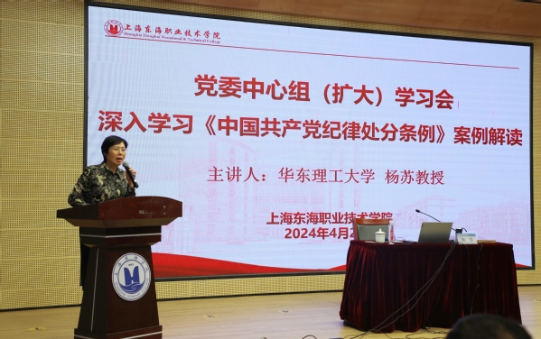 4月26日下午,学校在匠兴苑学术报告厅召开了党委中心组(扩大)学习会,华东理工大学杨苏教授应邀在大会上作报告,校党政领导、中层干部、教职工党员、学生入党积极分子代表等近300人聆听了报告。党委书记曹蓉蓉主持会议。