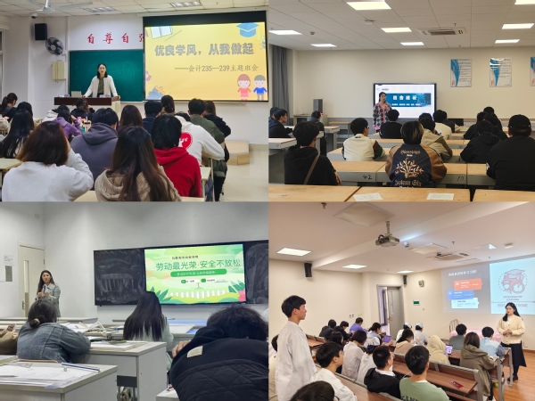 经管学院、机电学院分别结合“行为规范、工匠精神”等主题召开班会,低年级通过重温《学生手册》要点,举办“榜样的力量”分享会,减少学生缺勤率,转变学习态度,加强诚信意识。高年级鼓励参与技能、科技竞赛,强化“工匠精神”。艺术设计学院、护理学院以主题讲座、海报设计、见习感悟等形式,开展多形式主题活动。海报设计融入专业技能、学风建设理念及医院见习分享,促使同学们明确职业规划和发展方向,深化学风内涵建设。航空学院、教育学院依托“辅导员工作室”、“学风内涵实践项目”,利用新媒体平台,加强学风宣传力度。召开主题班会,关注同学成长、成才,注重培养同学学习兴趣、动力。同时,思考学风瓶颈,不断推进“三全育人”、家校共育理念。传媒学院、信息工程学院打造“专业+学风建设”模式,通过主题班会、婺源采风实践活动、“风信子”计划等,加强学生对专业思考,提高学习动力,低年级学生探索新行业、新知识,高年级学生参与实习、实践活动,加强专业技能。