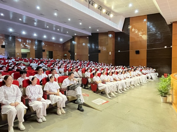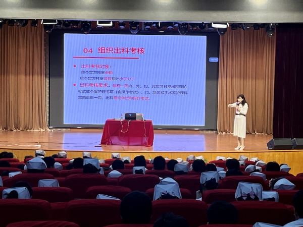 望远山而力行,乘东风而奋进。实习是很多大学生踏上职场的初体验,为了帮助学生更好地实习就业,解答他们在实习方面的困惑,提高实习期间的安全意识,并帮助他们尽快完成护生到护士的角色转变,5月23日下午,护理学院在东海源报告厅开展了由护理学院院长张美琴主持的《护理学院2022级实习动员》讲座,22级护理专业全体学生统一护士服着装,以专业的体态和良好的精神面貌参会。
